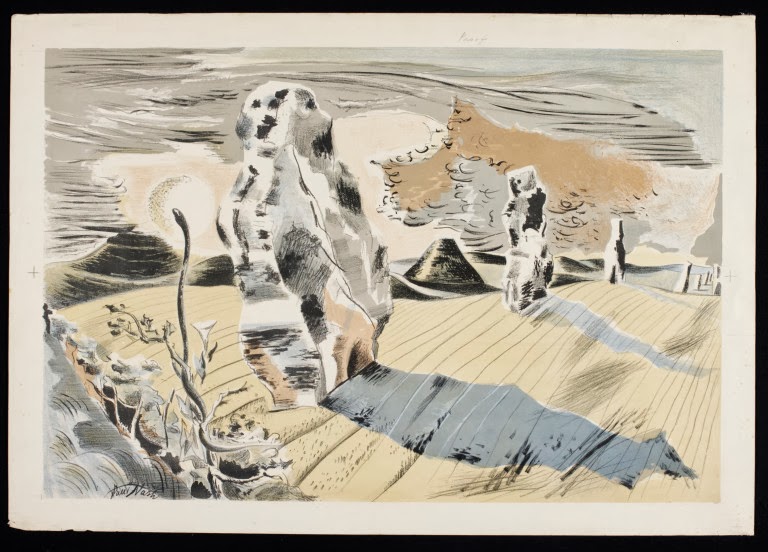 I’ve been intrigued how these very 1970s engagements with the Neo-Romantic aesthetic contrasts with how the Avebury stones were portrayed by major artists in the 1930s and 40s. The key figure here is Paul Nash– one of my favourite artists and one who inhabited the grey area between English surrealism and the Neo-Romantic school of the late 30s and 40s, although he was a little older than the key figures in both traditions. He has been called a ‘green surrealist’, which is a term I like.