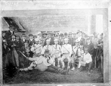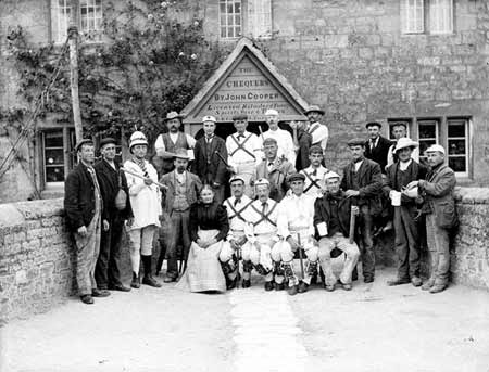 The final location on my mini-pilgrimage was the Chequers in Beaumont Road, Headington. There is a splendid photograph of the Headington Quarry team standing outside the pub taken by the prolific Oxfordshire photographer Henry Taunt. The image was probably taken around 1899 following the re-emergence of the side under the stimulus of Percy Manning. It is one of a series of photos taken by Taunt showing the dancers outside the pub and in the act of dancing. William Kimber can be seen playing the fiddle rather than the concertina with which he is more usually associated. The pub itself has been heavily restored- the wooden porch with its licensing information has now gone. There is an even earlier image of the Headington Team outside the Chequers taken just to the right of the porch in 1876 – Kimber was only four when this was taken. However, his father, also named William, can be seen in the back row of dancers next to the fiddler.