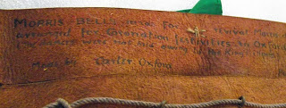 These differences in materials (bells; green ribbon; red thread) as well as the distinction in stitching and knot tying, clearly set the 1945 set apart. The only thing that actually links all the sets together are the broad colour scheme, layout and the noticeably the red leather backing, which does appear virtually identical on all the sets. The first two sets are recorded as being supplied by a TJ Carter (in fact the 1917 set says FJ Carter, but this is probably a mistake). However, the 1945 set are distinct enough in constructional technique and material to suggest that at the very least they were made by a different person, and quite possibly given the subtle variation in the materials, at a different time.