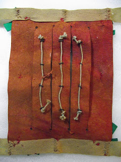 | Knots on rear of 1945.11.65 – note also red thread used to attach green ribbon |